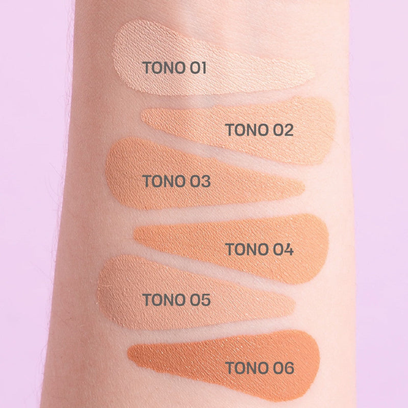 Nuestra base líquida mate es todo lo que necesitas para un acabado perfecto que dura todo el día. Está diseñado para controlar el brillo sin resecar la hidratación natural de la piel. Es ideal para esas largas jornadas que empiezan en clase y terminan en fiesta .