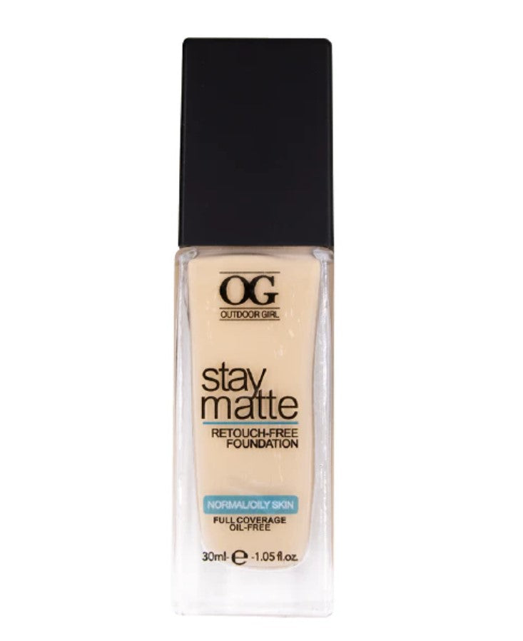 Base de alta cobertura con acabado mate. Ideal para pieles grasas. Libre de aceite, textura ligera. Su fórmula ayuda a controlar el brillo de la piel. No comedogenica. De larga duración y aprueba de agua.